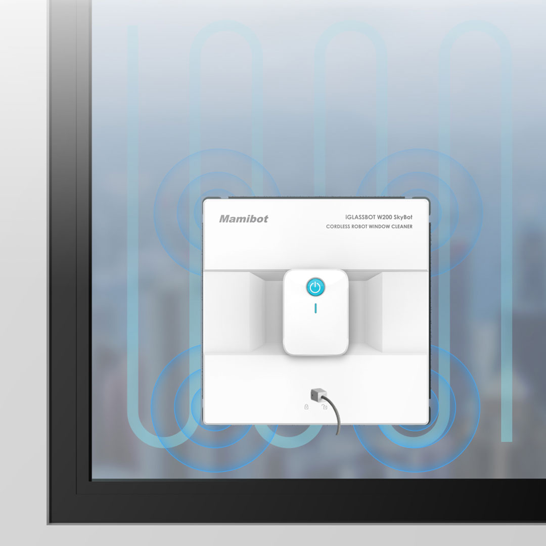 Četiri senzora pomažu W200 SkyBot-u da prepozna ivice bezramnih prozora, dok algoritam za automatsko podešavanje usisa povećava snagu usisavanja na ivicama stakla, štiteći robota od mogućeg pada.