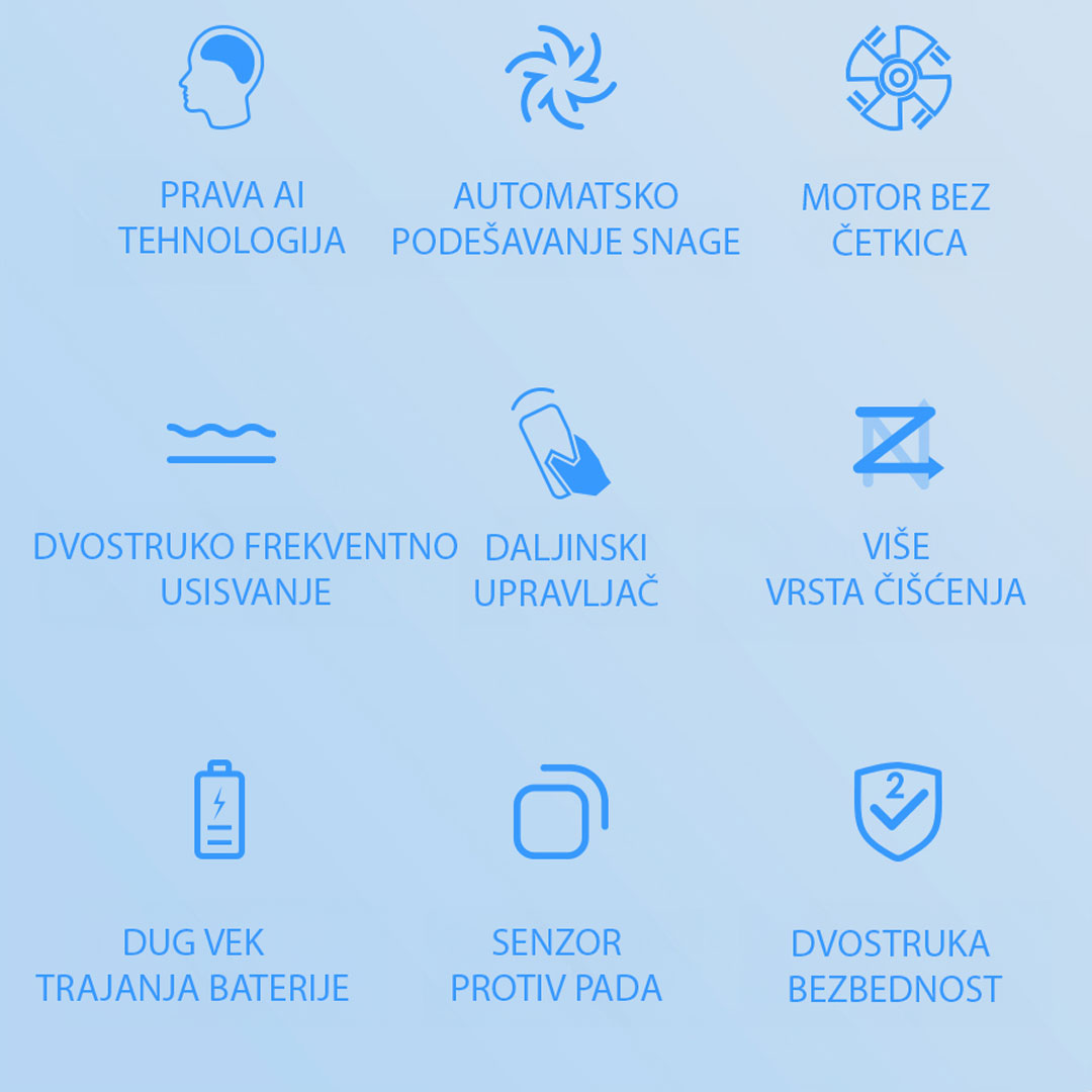 Inteligentno planiranje putanje čišćenja (AI algoritam), detekcija ramova i ivica prozora radi optimalnog rasporeda pranja.